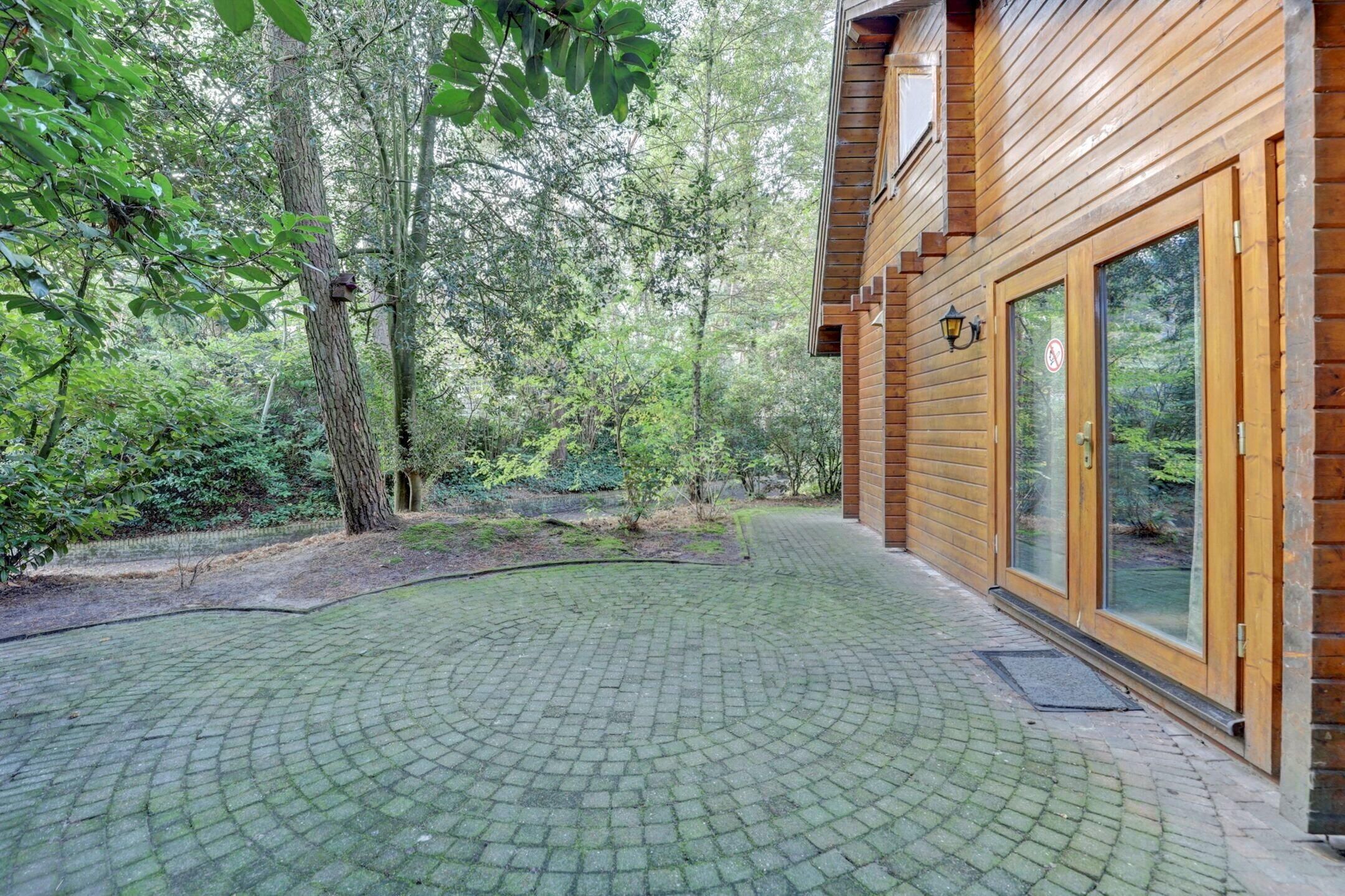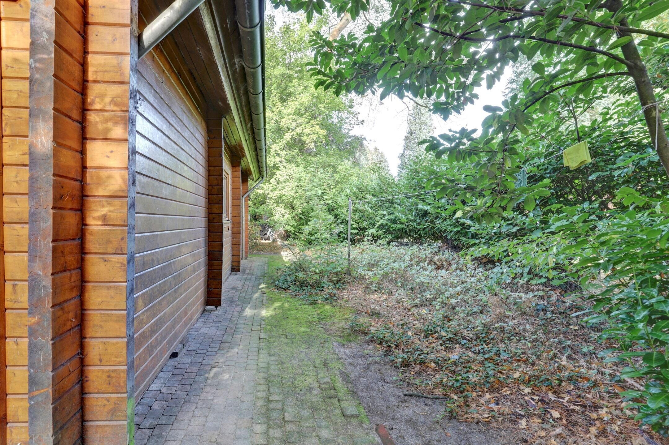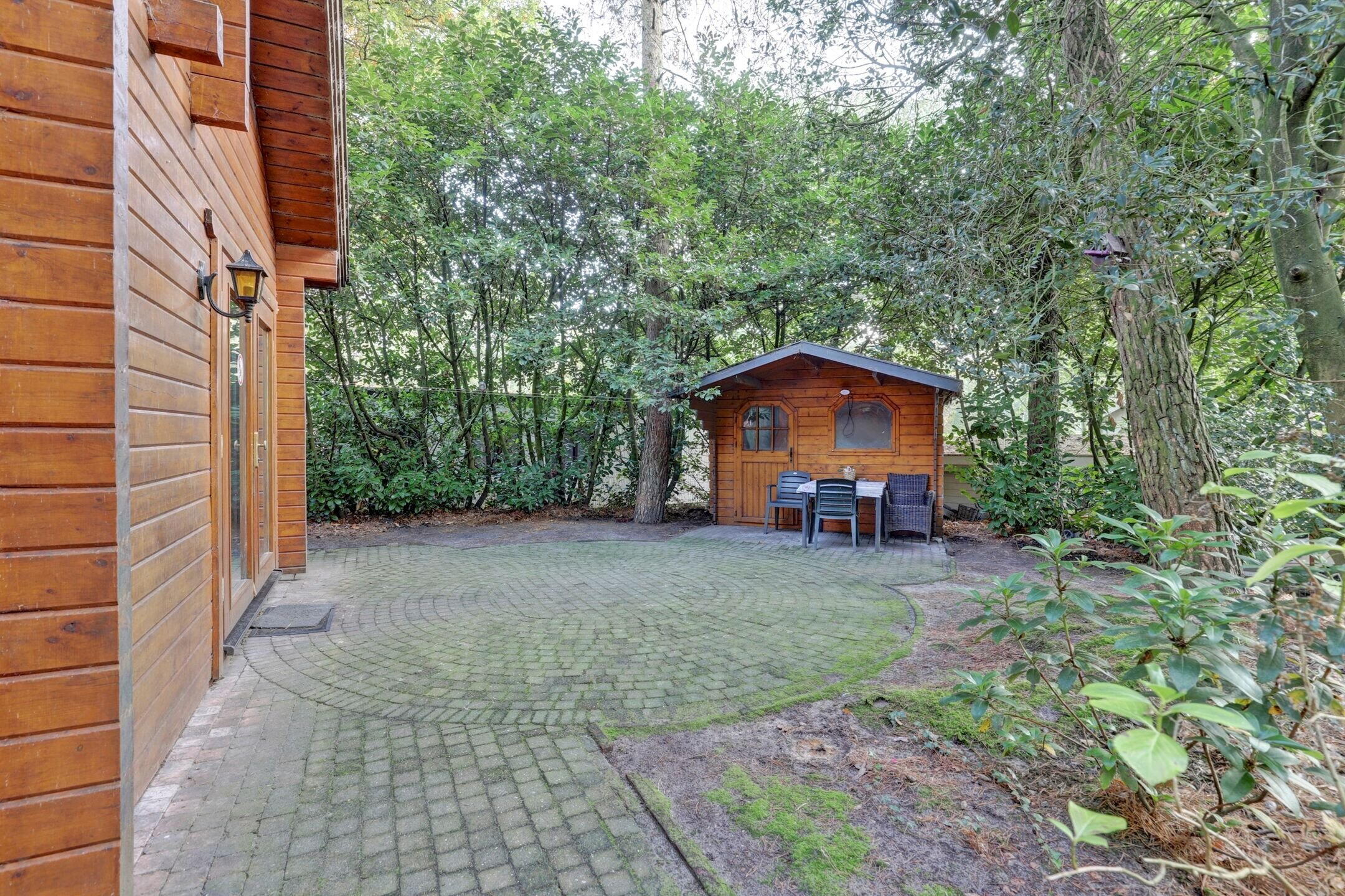 De tuin rondom het boshuisje bestaat uit veel groen met een prachtige mix van volwassen bomen en struiken waardoor je van privacy en de schaduw kunt genieten. Aan de voorkant van de woning ligt een ruim terras, perfect om te ontspannen, te ontbijten in de ochtendzon of ’s avonds te genieten van de bosgeluiden om je heen. Rondom de woning zijn meerdere mogelijkheden om knusse hoekjes te creëren waar je een extra zitje kunt plaatsen, ideaal om op elk moment van de dag een plek in de zon of juist in de schaduw te vinden. De natuurlijke beplanting en het bosrijke karakter geven de tuin een rustige sfeer. Achter in de tuin staat een houten tuinhuisje dat heel praktisch is. Hier kun je fietsen stallen, tuinmeubels en gereedschap opbergen of het inrichten als kleine werkplaats. Aan de voorzijde van de woning ligt een lange oprit met volop eigen parkeergelegenheid. Zo combineert deze tuin moeiteloos rust, functionaliteit en het echte buitenleven midden in het bos.